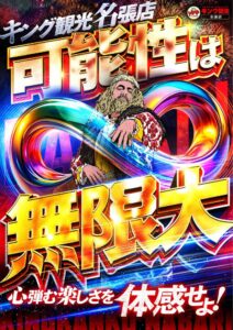 こちらはパチンコの台数や営業時間など含め8とゆかりのある情報は見当たらなかった。”パチ”ンコとの語呂合わせとか…?もしかしたら本当にインフィニティのことを指しているのか?ちょうどキングらしき男性も∞を持っていることだし。